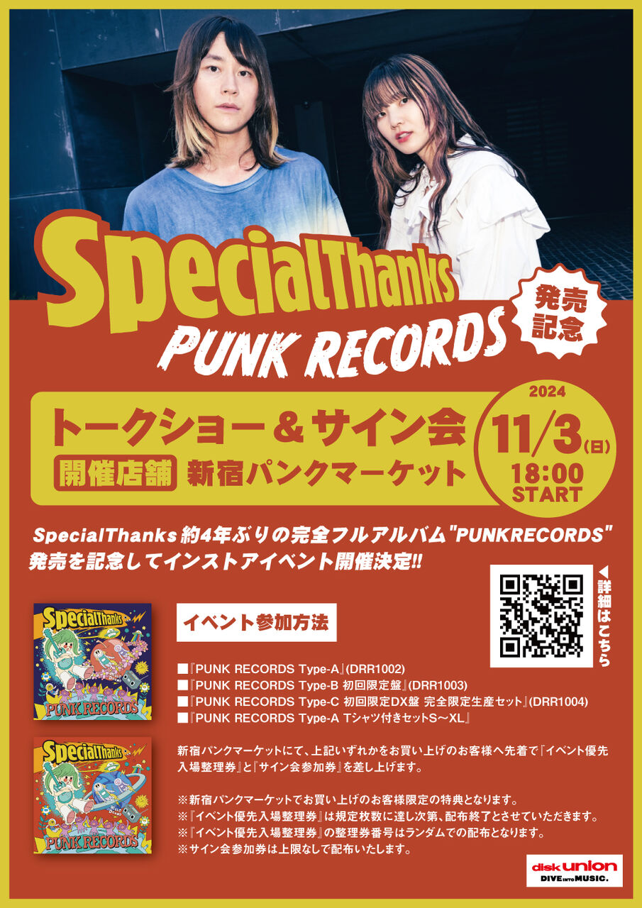 前作アルバムからコロナの時代を経てほぼ4年ぶりの完全フルアルバム"PUNK RECORDS"を3形態で10/23(水)に発売するSpecialThanks。